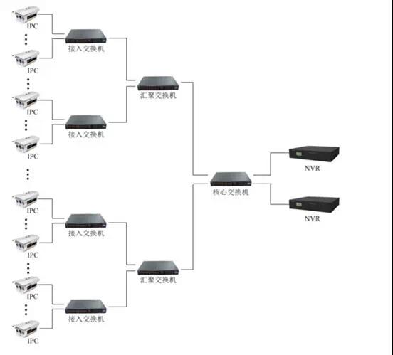 大型網(wǎng)絡(luò)組網(wǎng)都會(huì)用到三層網(wǎng)絡(luò)結(jié)構(gòu),這個(gè)在我們?nèi)蹼妚ip群中也有朋友問(wèn)起過(guò),200個(gè)監(jiān)控點(diǎn)位需不需要匯聚交換機(jī)? 是需要的,沒(méi)有匯聚層交換機(jī)做媒介,核心交換機(jī)的壓力會(huì)很大,會(huì)出現(xiàn)網(wǎng)絡(luò)堵塞、延遲等情況。